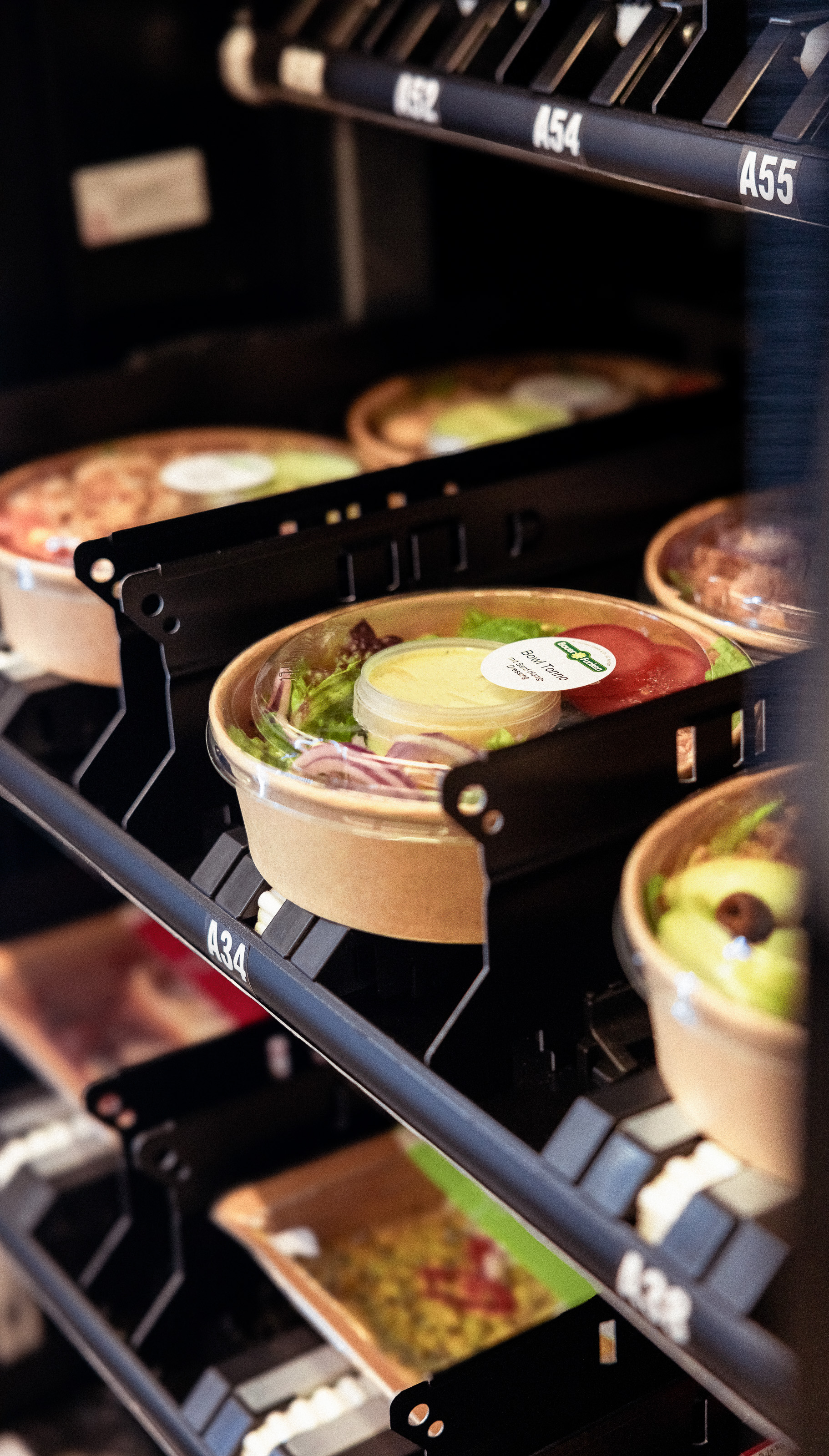 Unsere Frischeautomaten bieten rund um die Uhr gesunde und frische Snacks und Mahlzeiten. Perfekt für Büros und Pausenräume, liefern sie Obst, Salate, Sandwiches und mehr – stets gekühlt und bereit zum Genießen. Fördern Sie gesunde Ernährung am Arbeitsplatz!